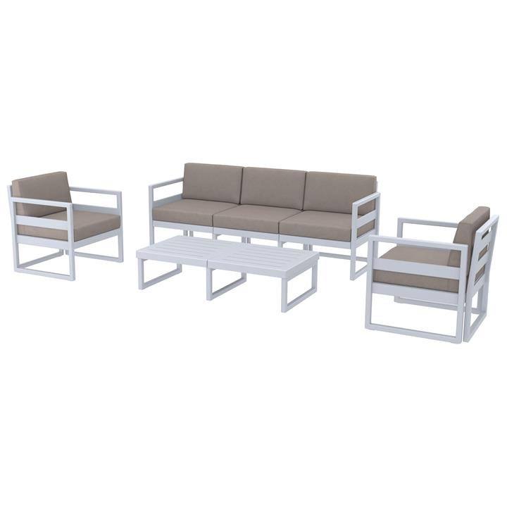 Siesta Mykonos 4 Piece Outdoor Lounge Set with Cushions, 3+1+1 Seater, Taupe / Beige