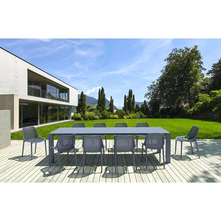 Siesta Vegas 11 Piece Commercial Grade Outdoor Extendable Dining Table Set, 260-300cm, with Air Chair, Anthracite