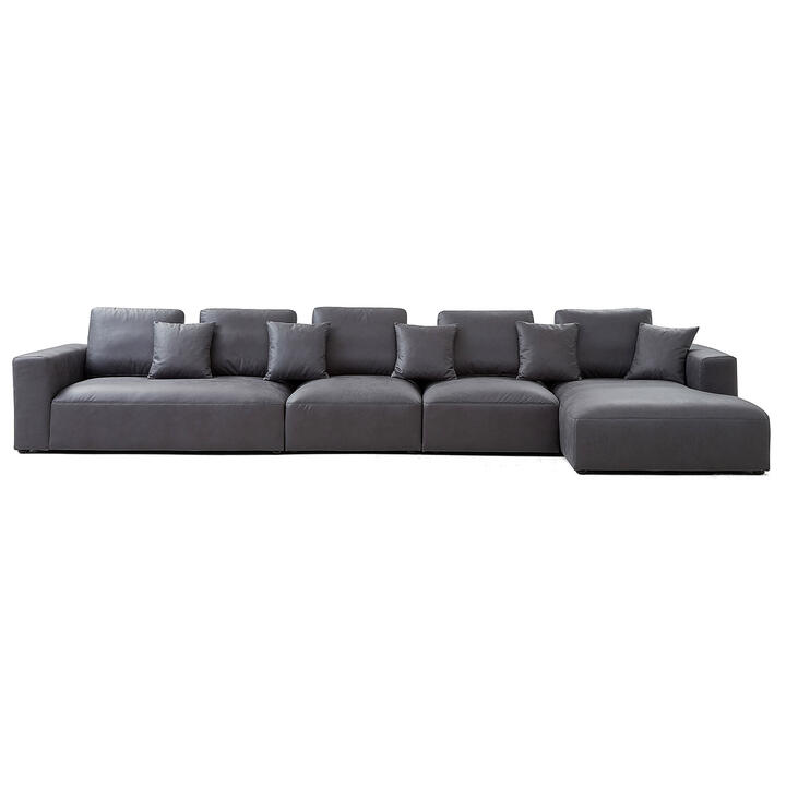 Sleekon Modern Fabric Modular Corner Sofa, 5 Seater with RHF Chaise, Dark Grey