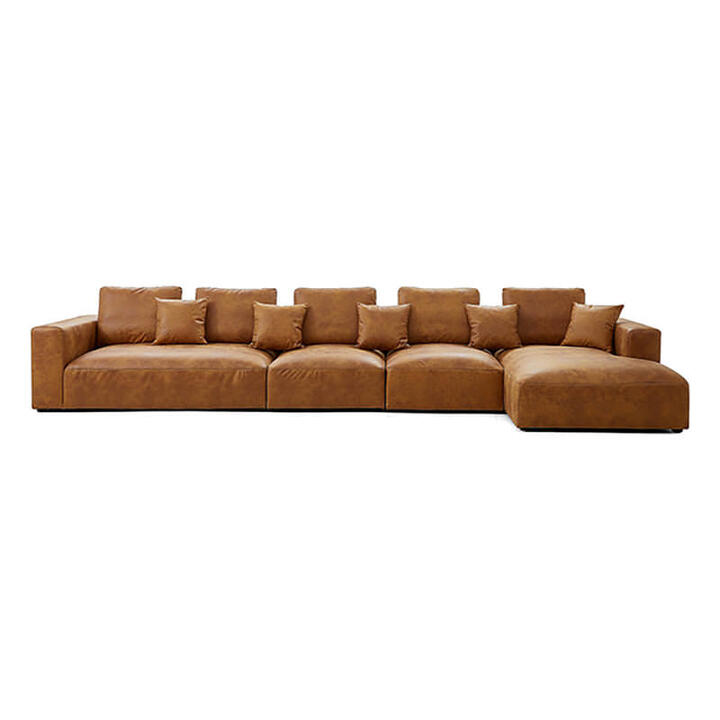 Sleekon Modern Fabric Modular Corner Sofa, 5 Seater with RHF Chaise, Tan