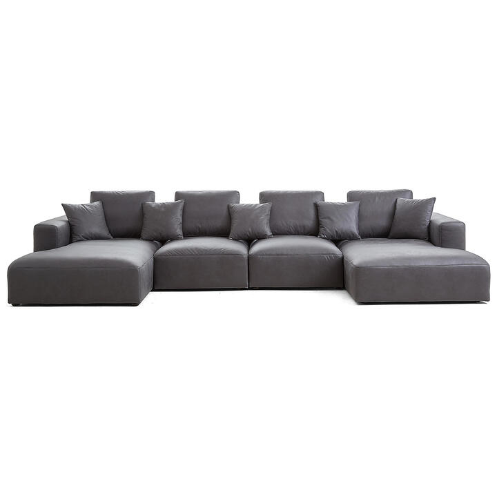 Sleekon Modern Fabric Modular U-shape Sofa, 2 Seater with Double Chaise, Dark Grey