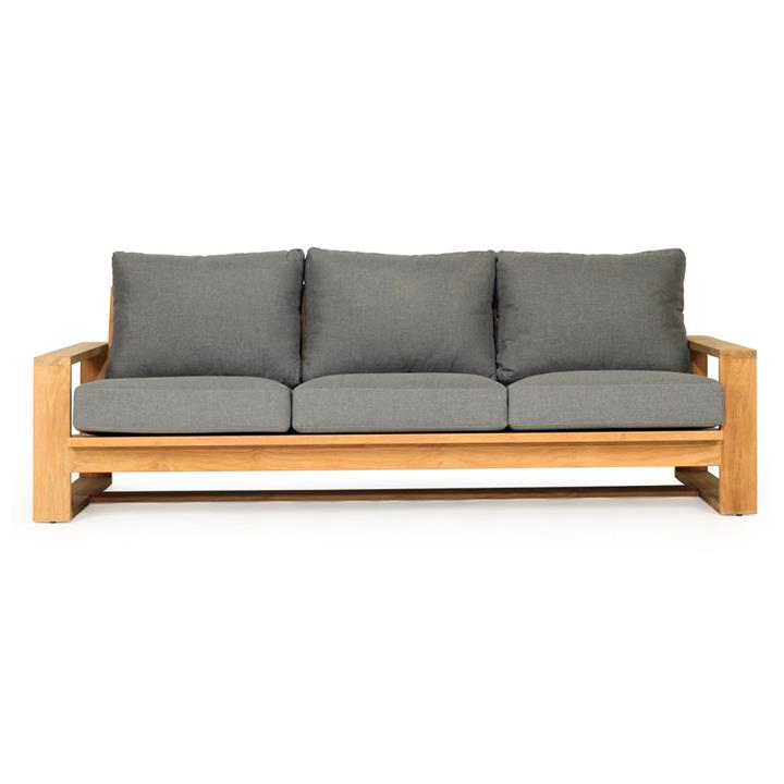 Tanoa Teak Timber Outdoor Sofa with Cushion, 3 Seater, Natural / Cast Slate