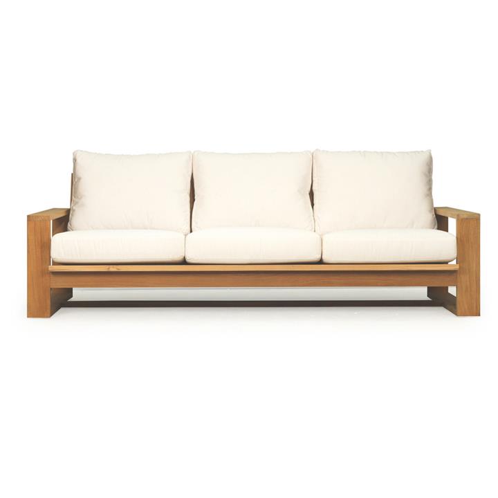 Tanoa Teak Timber Outdoor Sofa with Cushion, 3 Seater, Natural / Off White