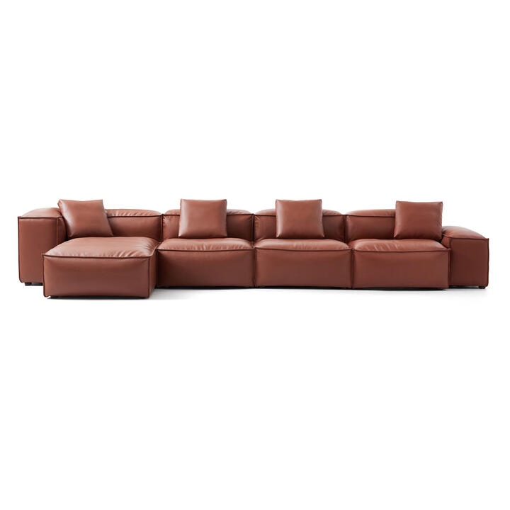 Touff Bonded Leather Modular Corner Sofa, Left High & Right Low Arms, 4 Seater with Reversible Chaise, Brown