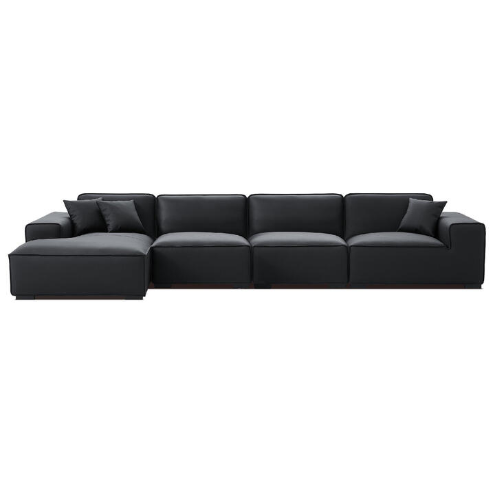 Velotia Modern Leather Sofa, 3 Seater with LHF Chaise, Black