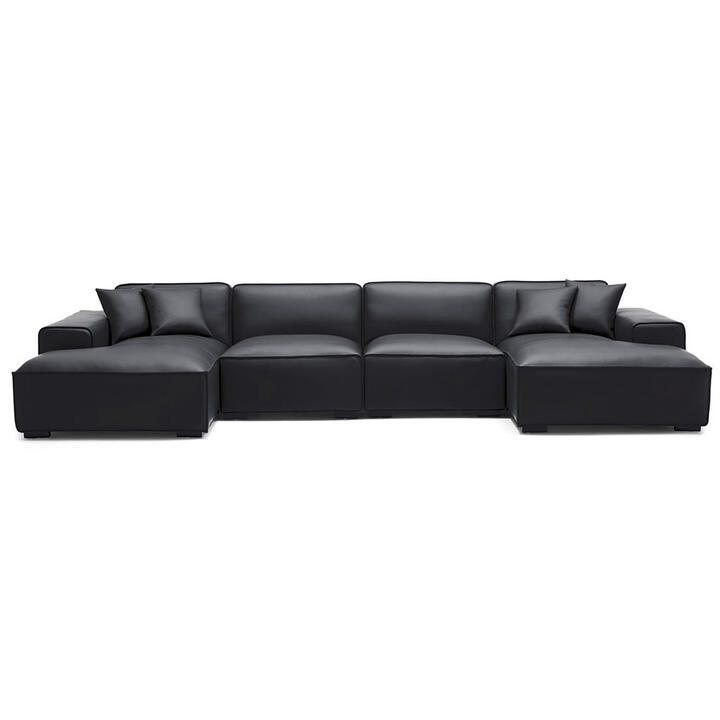 Velotia Modern Leather U-shape Sofa, 2 Seater with Double Chaise, Black