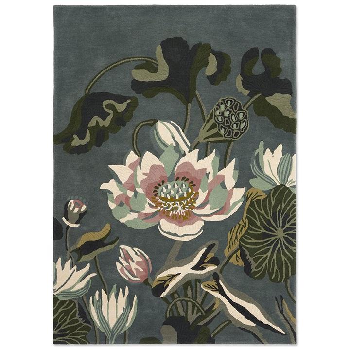 Wedgwood Waterlily Hand Tufted Designer Wool Rug, 280x200cm, Midnight Pond