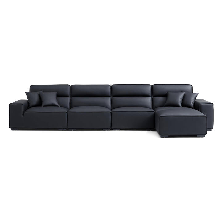 Martina Leather Modular Electric Recliner Corner Sofa, 4 Seater with Console, Black