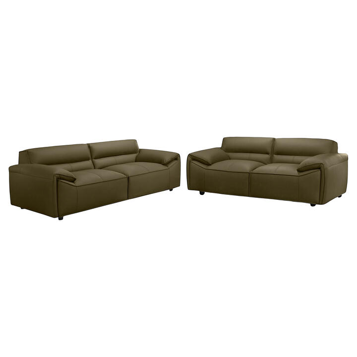 Zaxton 2 Piece Leather Sofa Set, 3+2 Seater, Olive